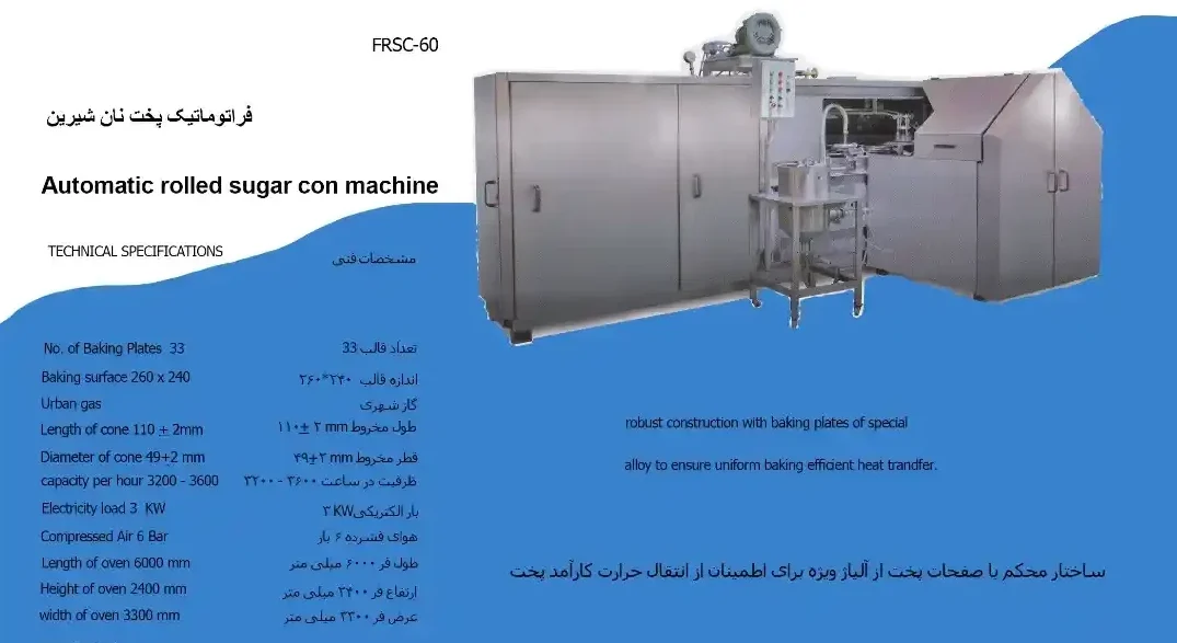 فرن طبخ بسكويت آيس كريم مخروطية اوتوماتيكي تماما – بيع من ايران